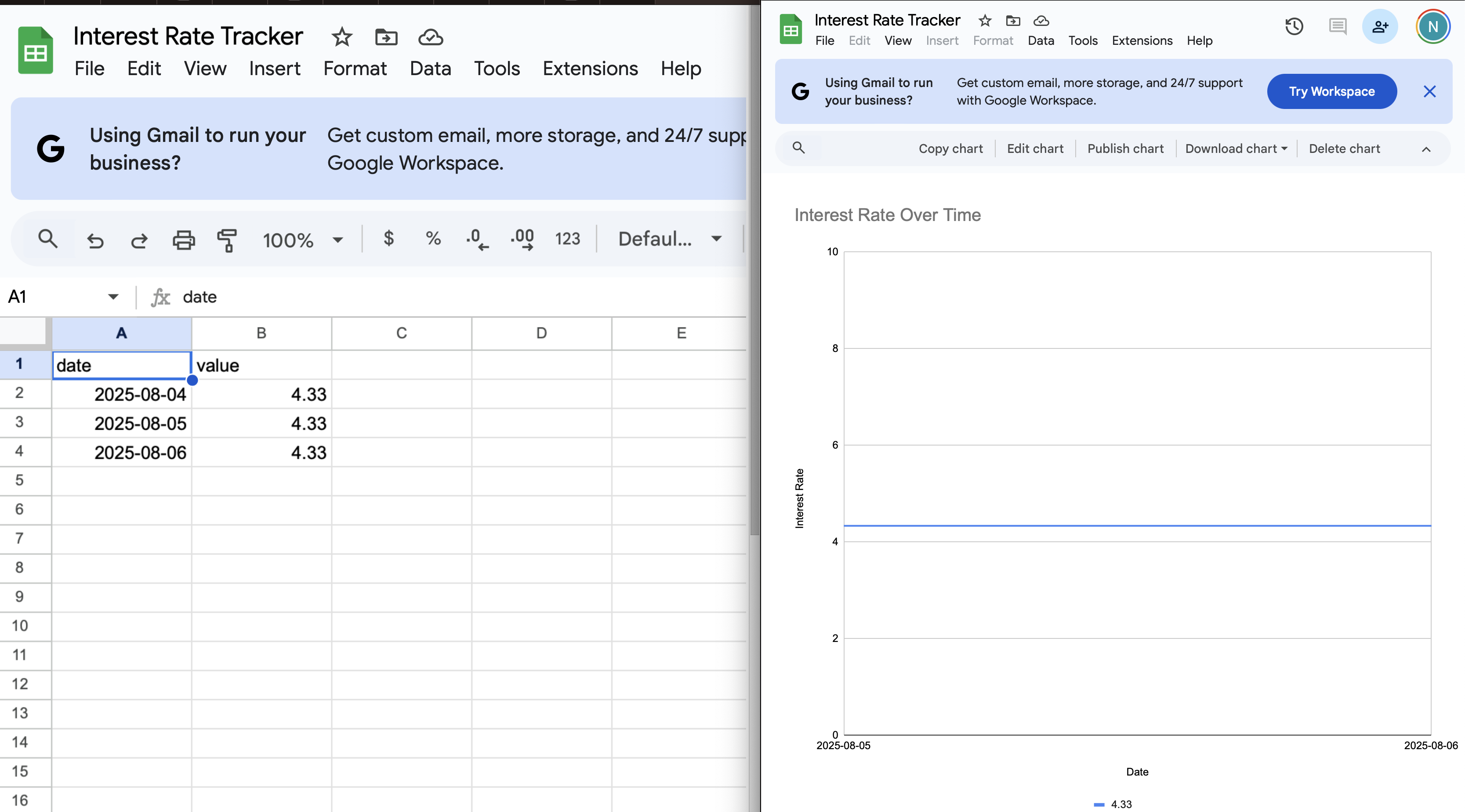 Automates daily Fed rate updates to Google Sheets and email.